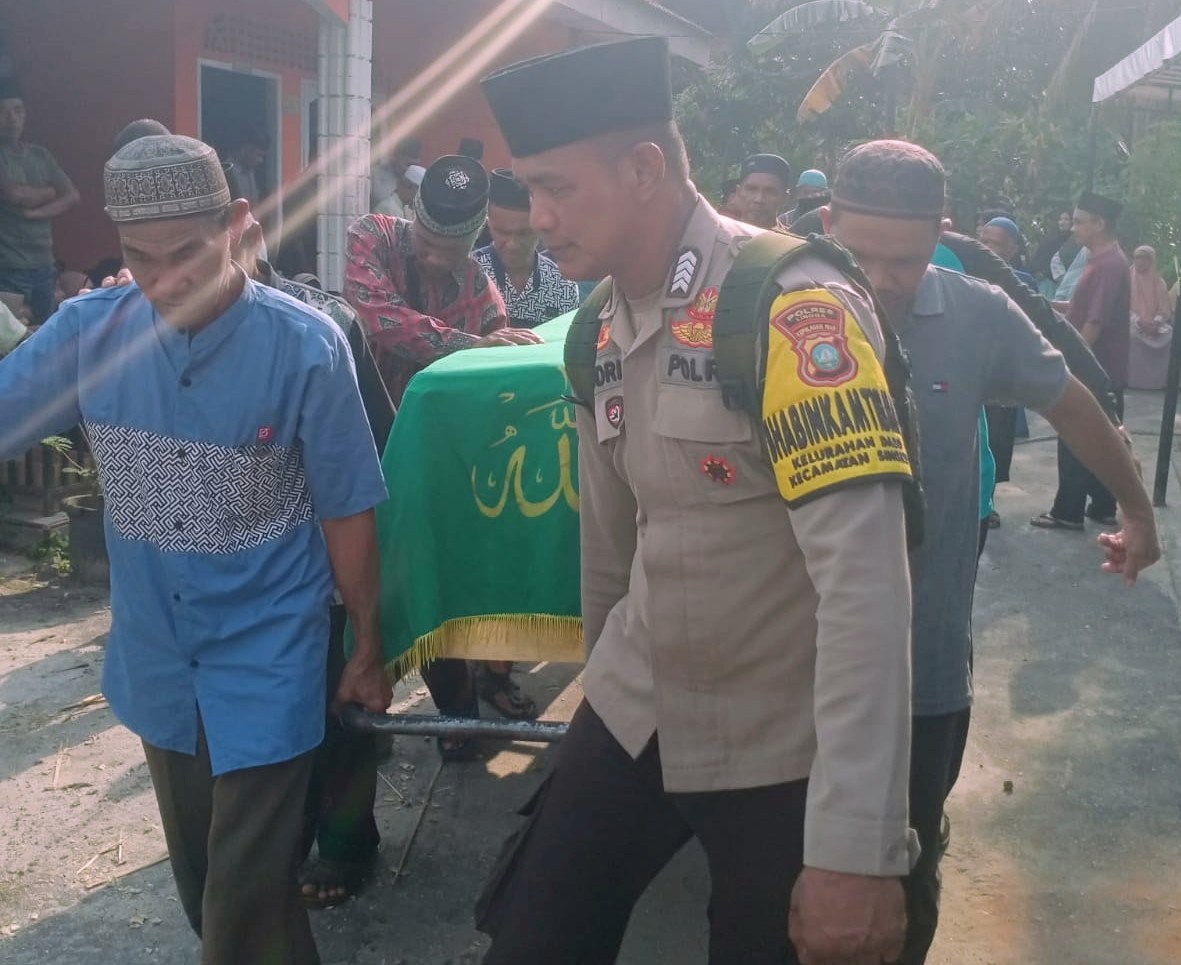 Bhabinkamtibmas Kelurahan Dabo, Bripka Hendri, melaksanakan kegiatan sambang duka ke rumah duka almarhum Encek Saleh bin Encek Yusuf (93). (Ft: Ist)