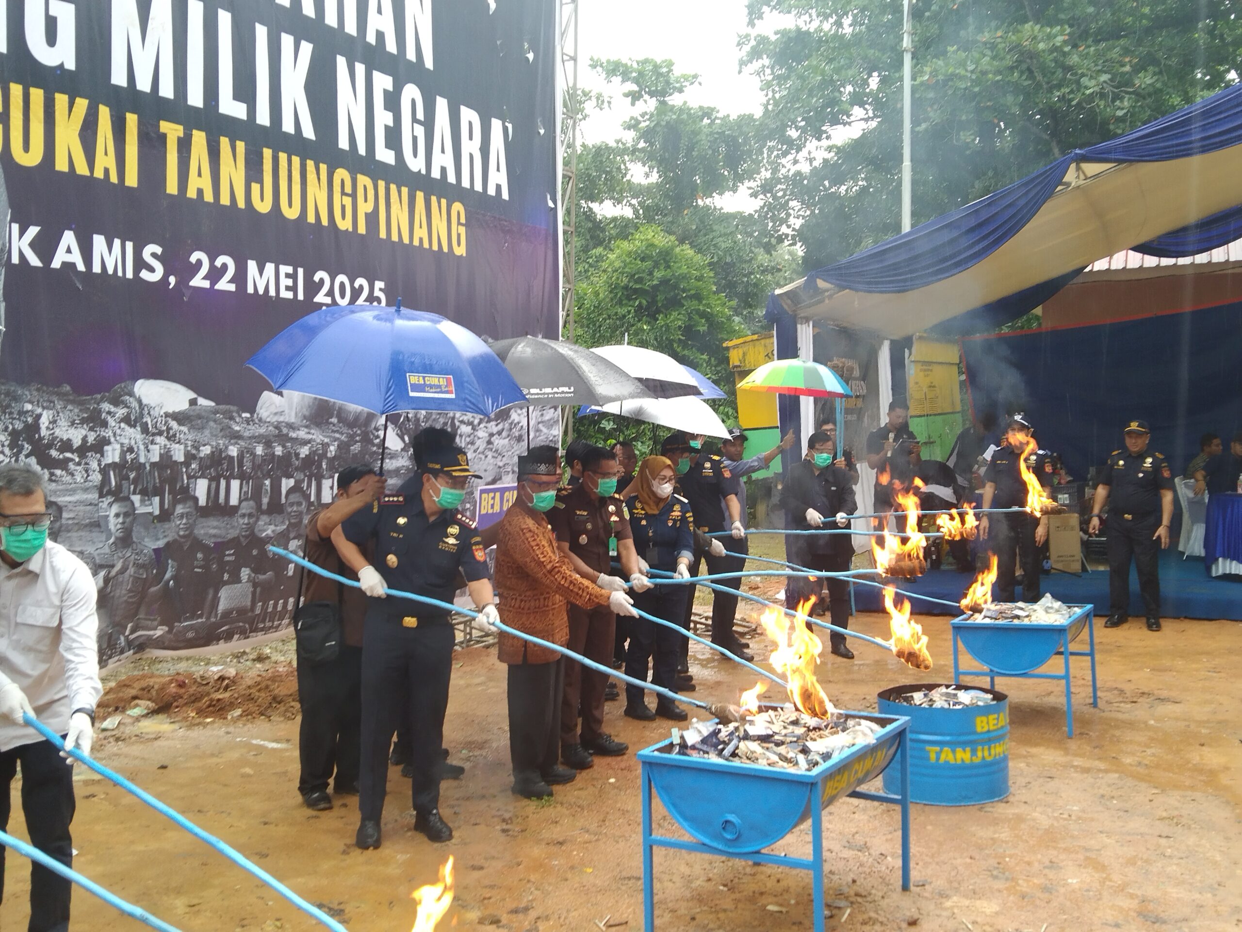 Dipimpin Kepala Kantor Bea Cukai Tanjungpinang, Tri Hartana, pemusnahan disaksikan para pemangku kepentingan, aparat penegak hukum dan pihak-pihak terkait sebagai bentuk transparansi atas barang hasil tegahan yang tidak diselesaikan kewajiban kepabeannya atau dilarang pemasukannya ke dalam negeri.