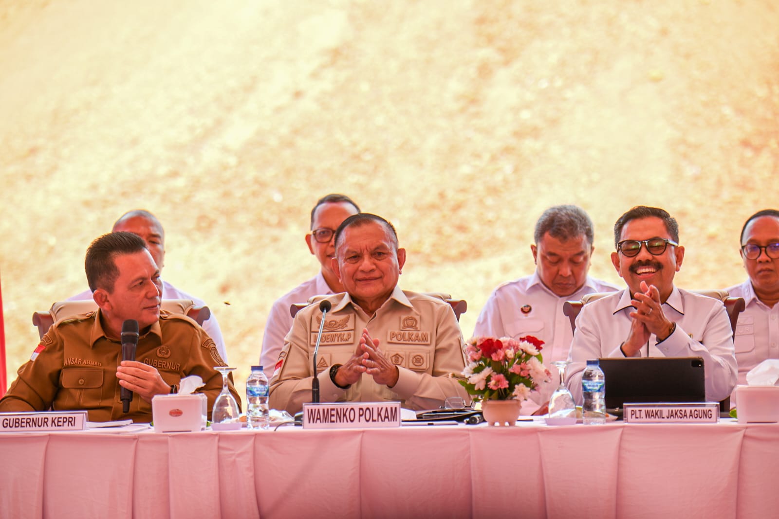 Launching Konferensi Pers Sekaligustersebut disampaikan oleh Wamenko Polkam, PLT. Wakil Jaksa Agung RI, Sekretaris Jaksa Agung Muda Intelijen, Para Pejabat Tinggi yang tergabung dalam Desk Koordinasi PPDN, Kepala Kejaksaan Tinggi Kepulauan Riau, Gubernur Kepulauan Riau beserta jajaran Forkopimda Provinsi Kepulauan Riau, Walikota dan jajaran Forkopimda Kota Tanjungpinang, Bupati dan jajaran Forkopimda Kabupaten Bintan, Tokoh Masyarakat dan Awak Media dari berbagai media baik elektronik, media online maupun media cetak. (merah)