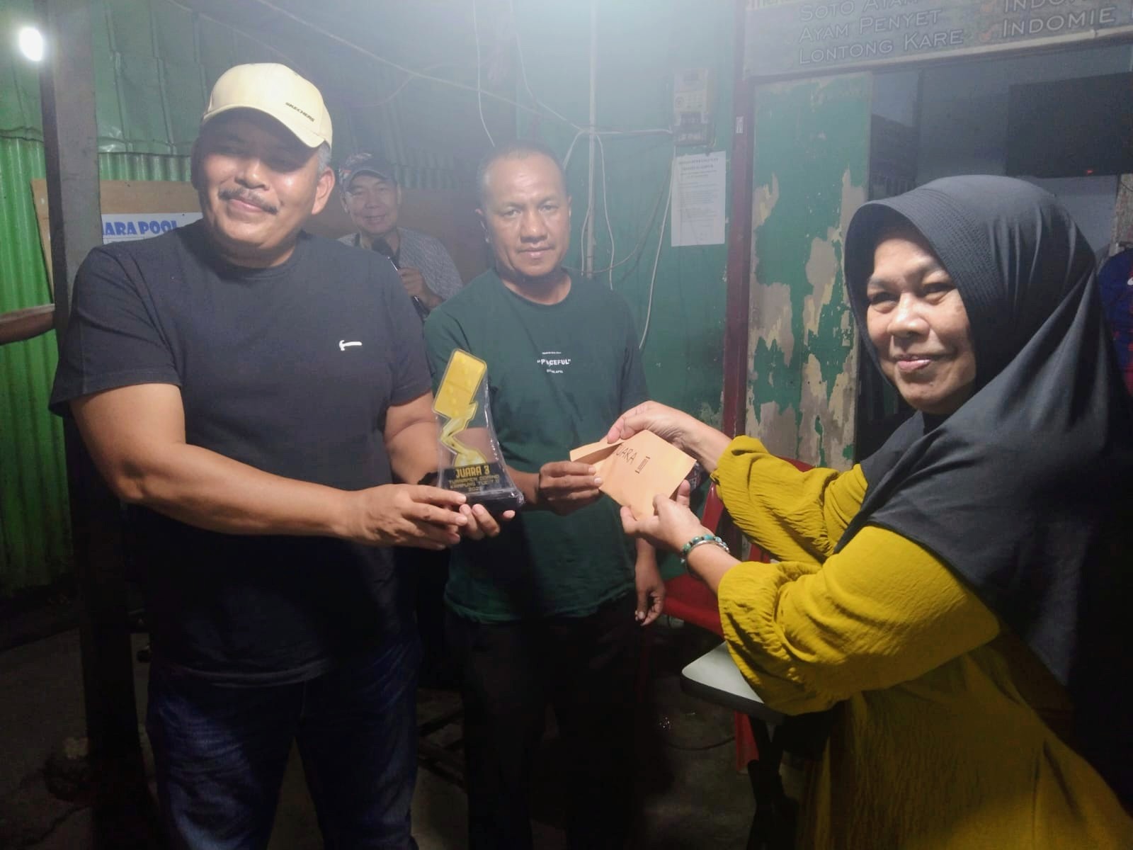 Juara ke 1 adalah Tim Pak Coy mendapatkan Tropy, Sertifikat serta uang tunai Rp 3,5 Juta.