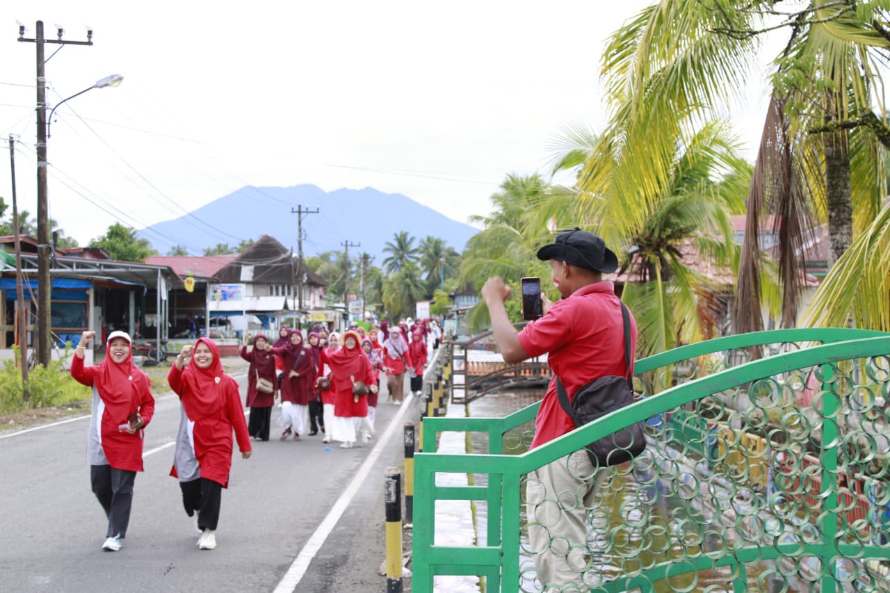 Semangat Ibu-ibu dalam mengikuti Gerak Jalan Sehat (GJS) Kerukunan menyambut HUT RI Ke-80. (Ft: Adi)