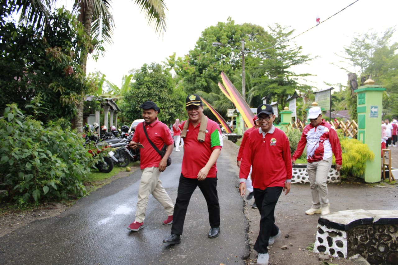 Semangat Ibu-ibu dalam mengikuti Gerak Jalan Sehat (GJS) Kerukunan menyambut HUT RI Ke-80. (Ft: Adi)